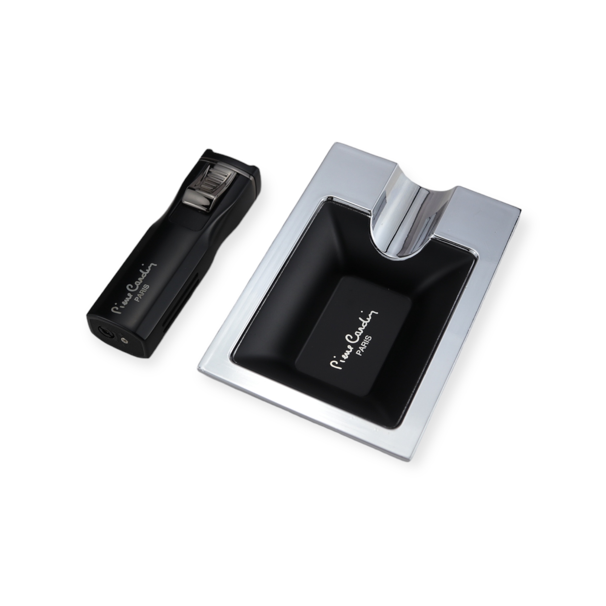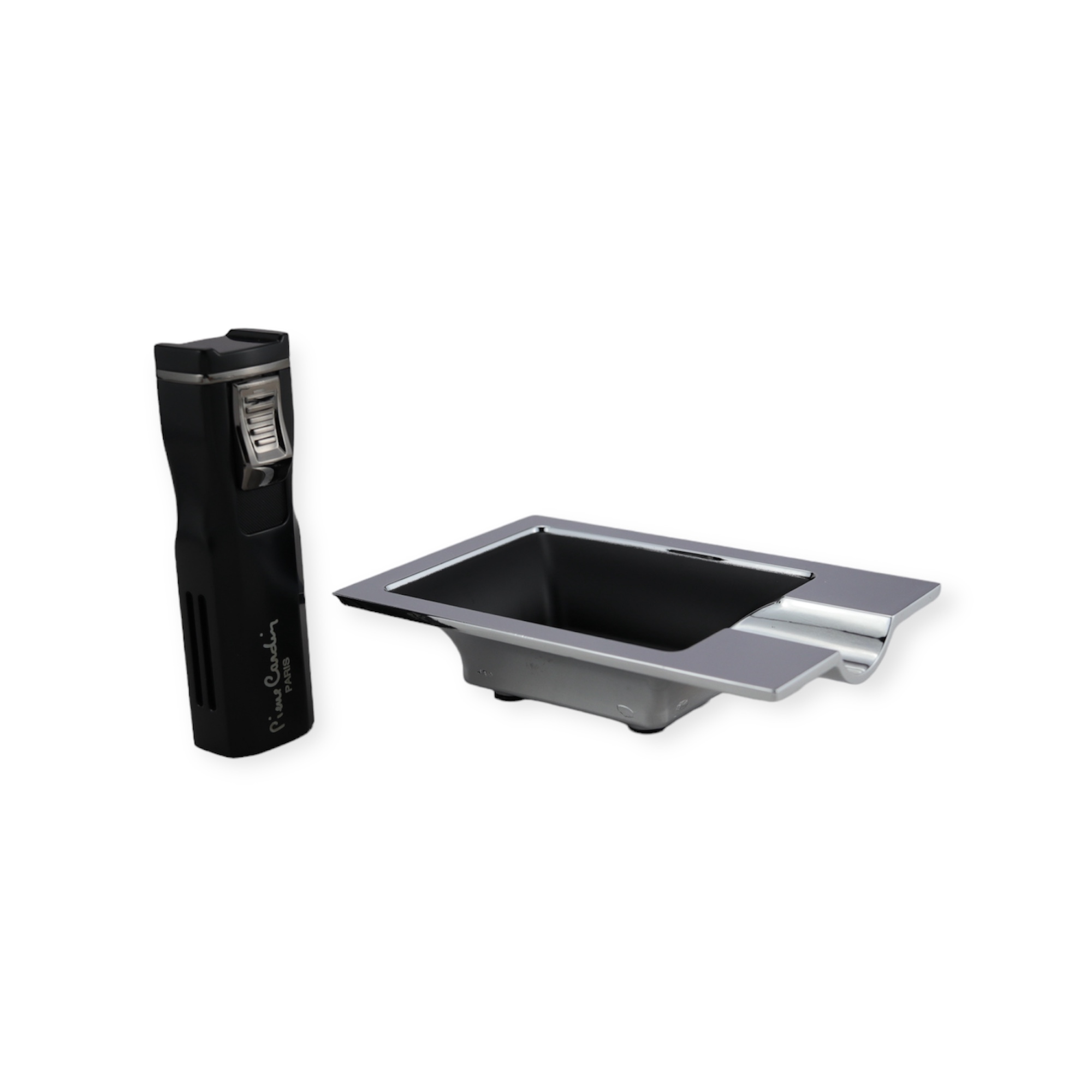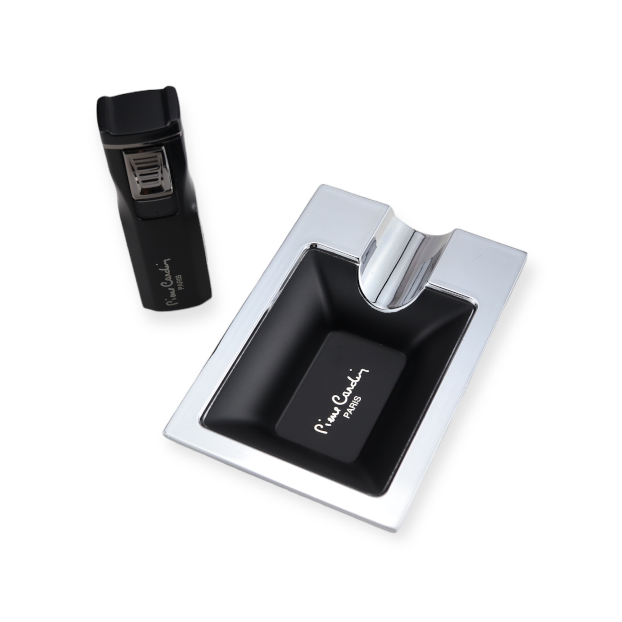 Pierre Cardin Cigar Set PCX-018 – Ashtray and Lighter Set in Black & Silver