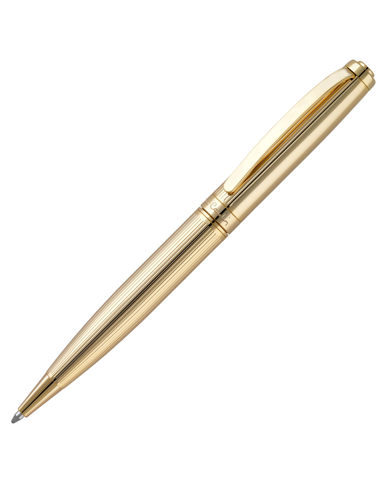 The quintessential statement of classical style and elegance from Pierre Cardin. The Collection Ballpoint Pen is manufactured from polished brass, hand-tooled to produce a guilloché finish and triple-plated in 22 carat gold or chromium. Each cap is manufactured and adjusted to pair precisely with the lower body for the perfect fit. The clip is forged from an individual ingot of brass before being hand-polished and electroplated to match the pen casing.