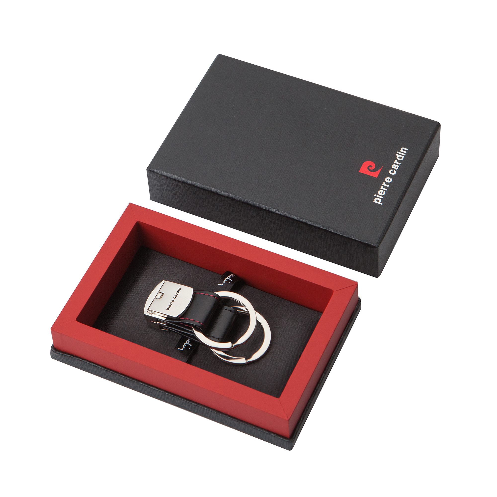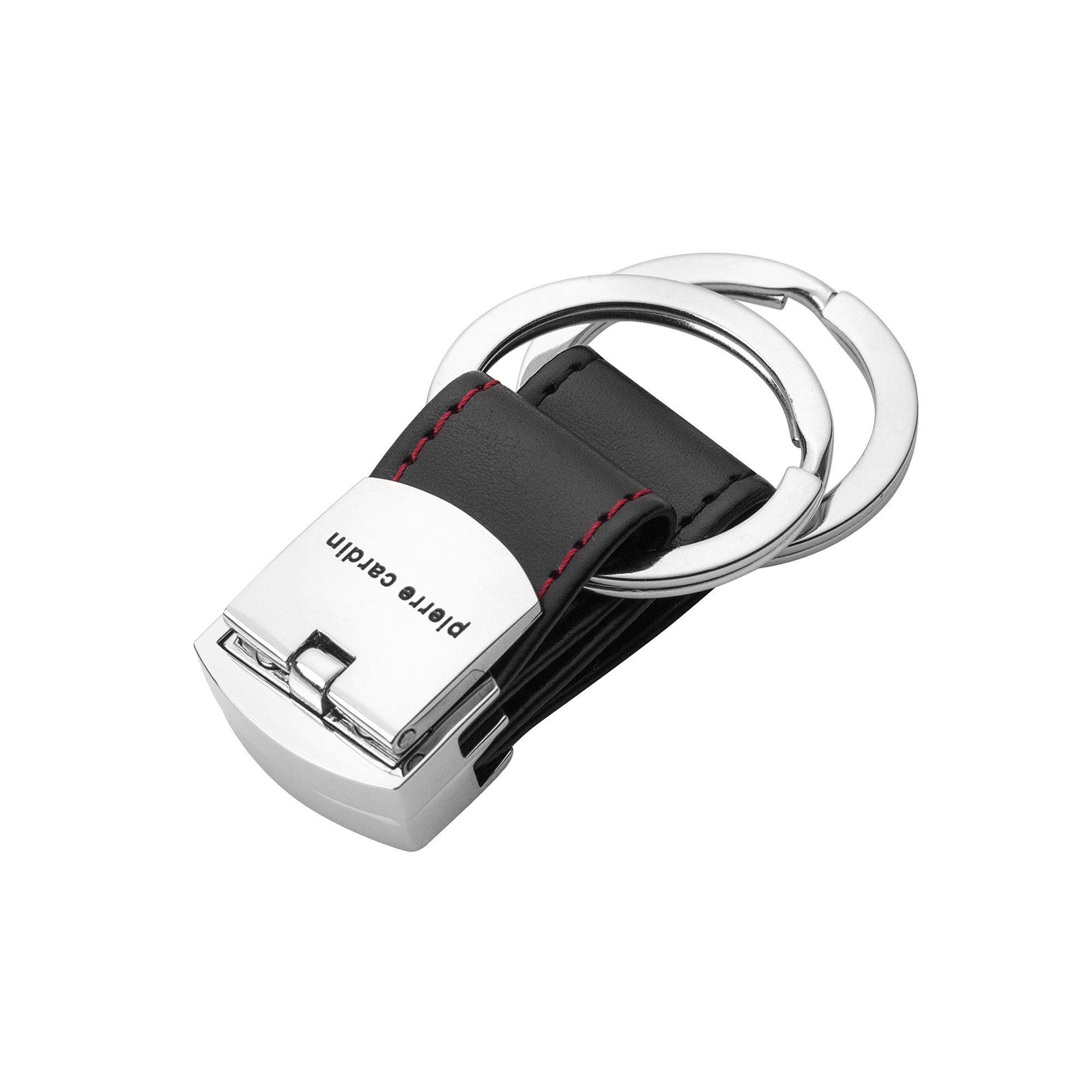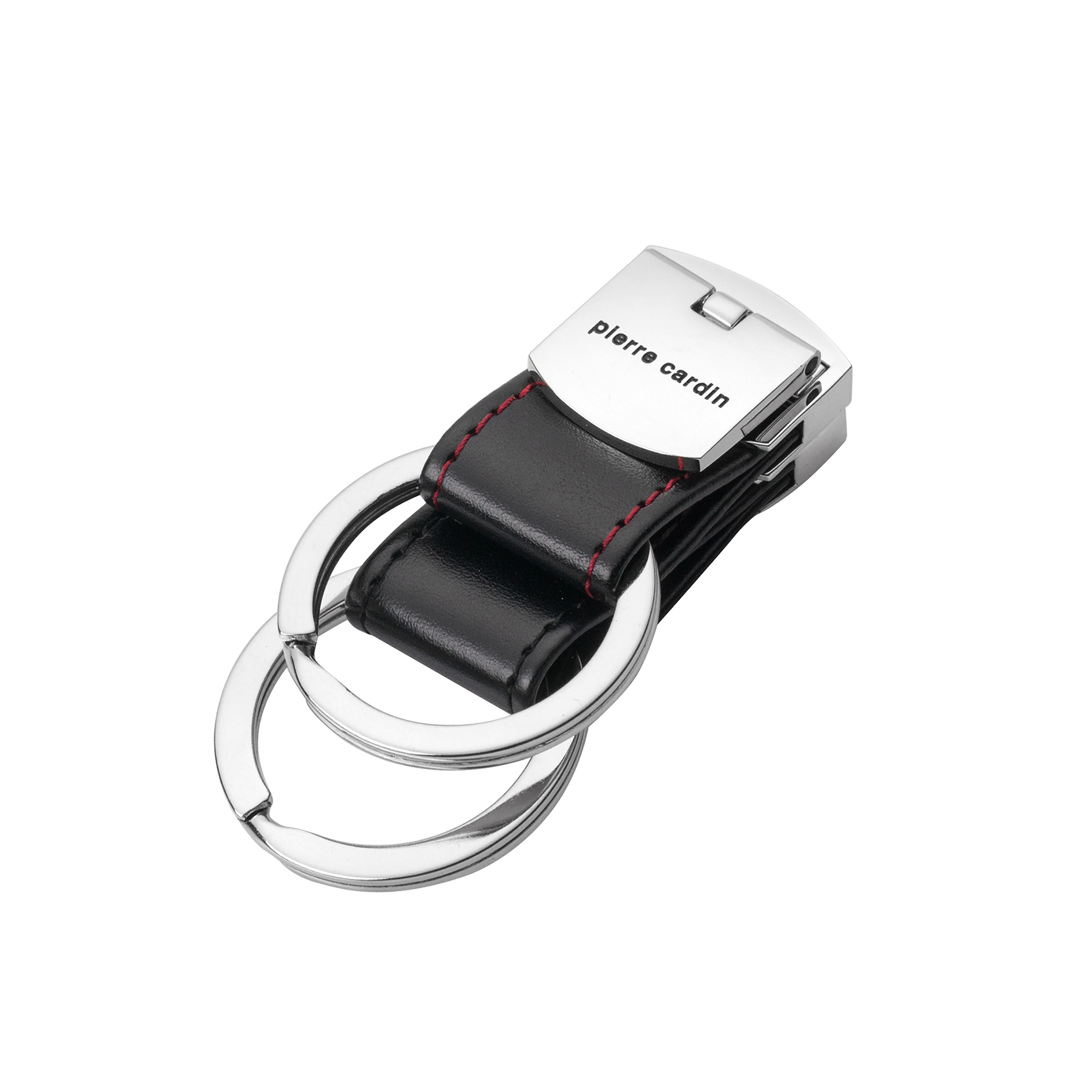 PCK004 Pierre Cardin key ring with bold red stitching and a sleek metal body. Compact, functional, and stylish — a refined accessory for daily use or gifting.