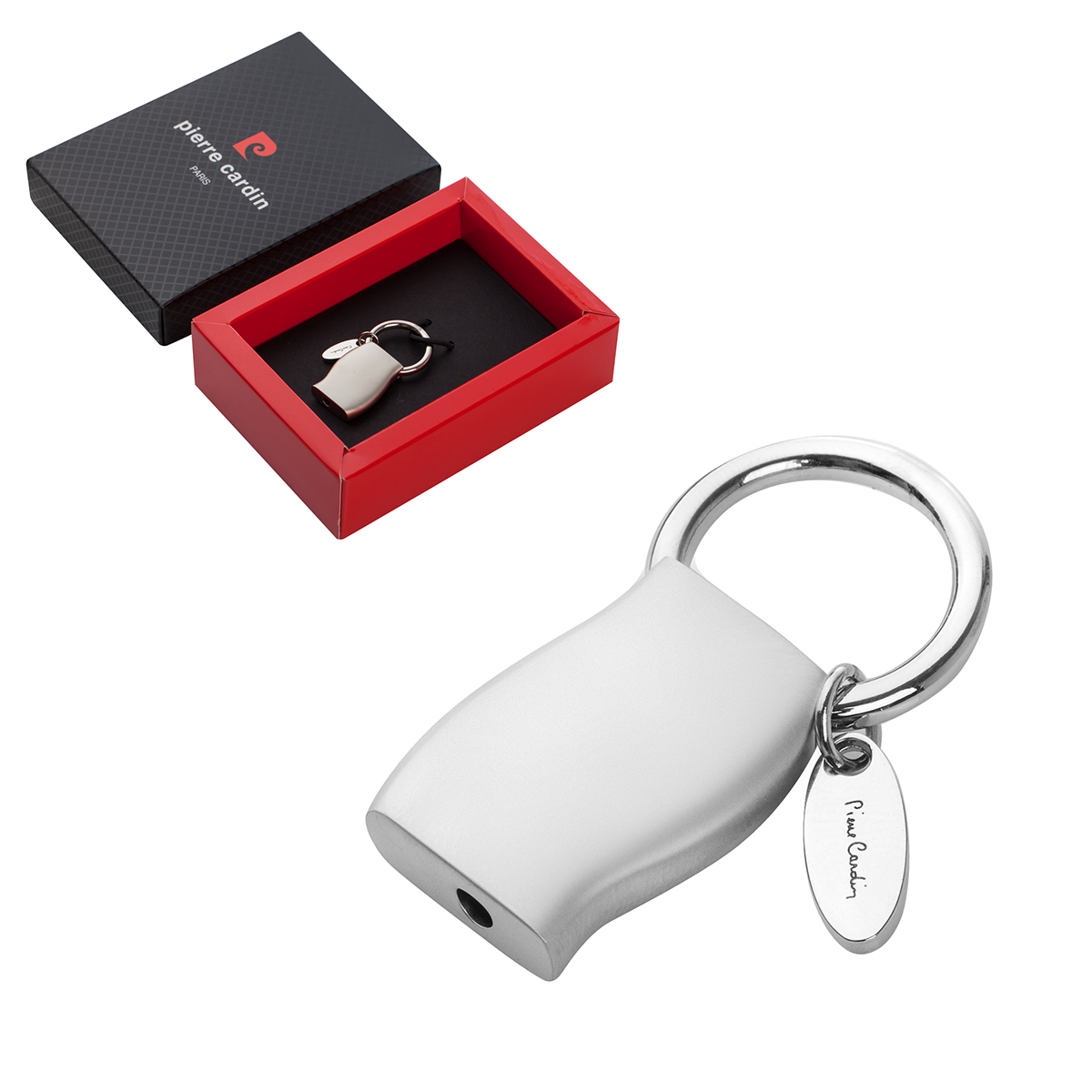 PCK005 Pierre Cardin Minimalist key ring with a compact metal form factor, presented in a sophisticated gift box — practical and elegant.