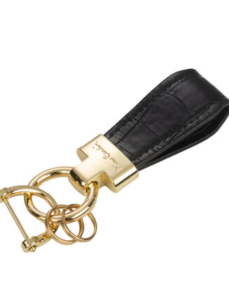 Elevate everyday essentials with this elegant Pierre Cardin key ring, designed with a refined black lacquer finish and gold-tone hardware. The sleek combination of materials embodies timeless sophistication and understated luxury, making it a stylish yet practical accessory for both personal use and gifting.